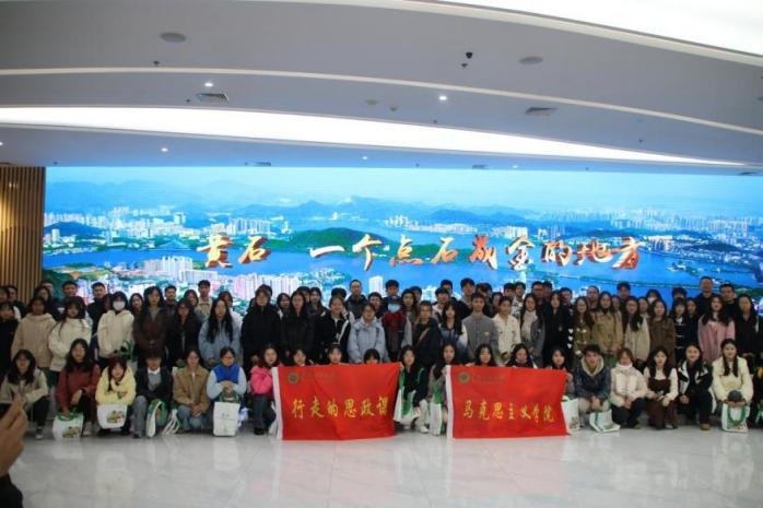 为深化新时代学校思想政治理论课改革创新,将思政小课堂同社会大课堂结合起来,建设用好“大思政课”,11月24日,我院与黄石市市场监督管理局联合开展“大思政课”社会实践活动。本次活动由滕帅、王依依、米霞、张星、陈文婷老师带队,黄石市市场监督管理局专职副书记阮慧芳陪同,“中国近现代史纲要”课程师生、“思想道德与法治”课程师生以及我院青年宣讲团成员共110余人参加。