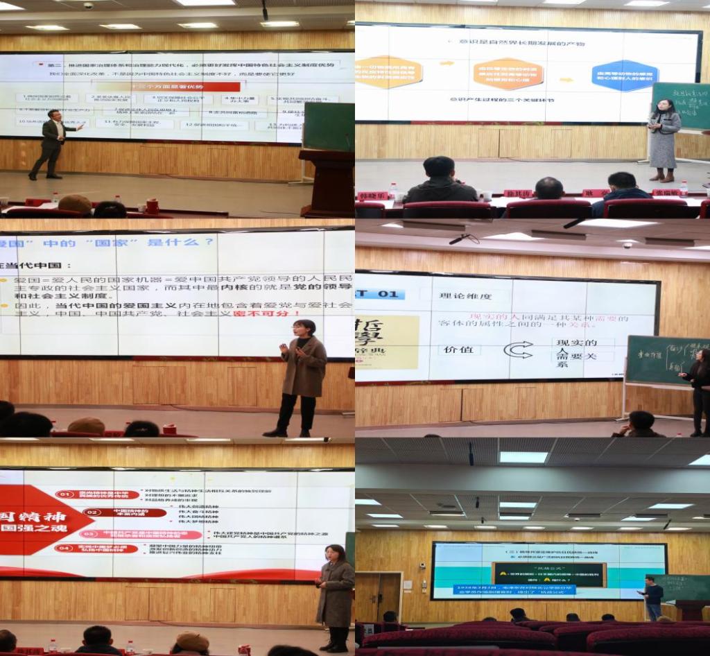 在教学展示环节,6位参赛教师根据思政课节选章节和重点问题进行了20分钟教学展示。高海波老师以“全面深化改革”为主题,对国家治理体系与治理能力之间的辩证关系进行深入讲解;冷蓉老师以“马克思主义意识观”为主题,围绕意识的起源、意识的本质、意识与人工智能三方面内容展开教学;董梅昊老师以“爱国、爱党、爱社会主义为何是一致的”为线索,通过案例分析详细讲解了当代爱国主义的“正确打开方式”;贠婷婷老师从“面纱”与“真相”两方面,对普世价值进行了深度剖析;马慧玲老师以“做新时代的忠诚爱国者”为主题,对爱国主义的基本内涵与基本要求作了生动阐释;李明轩老师以抗日民族统一战线的建立和巩固为主要内容,着重讲述了中国共产党是中国人民抗日战争的中流砥柱的观点。