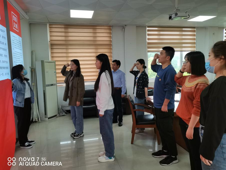 主题党日活动结束后,综合支部继续开展了预备党员接收与宣誓仪式。会议通过了同意接收江南同志为预备党员的决议。大家对新接收为预备党员的江南同志表示祝贺。宣誓仪式上,对着鲜艳的党旗,支部副书记杨莹莹同志领誓,与会同志共同宣誓。