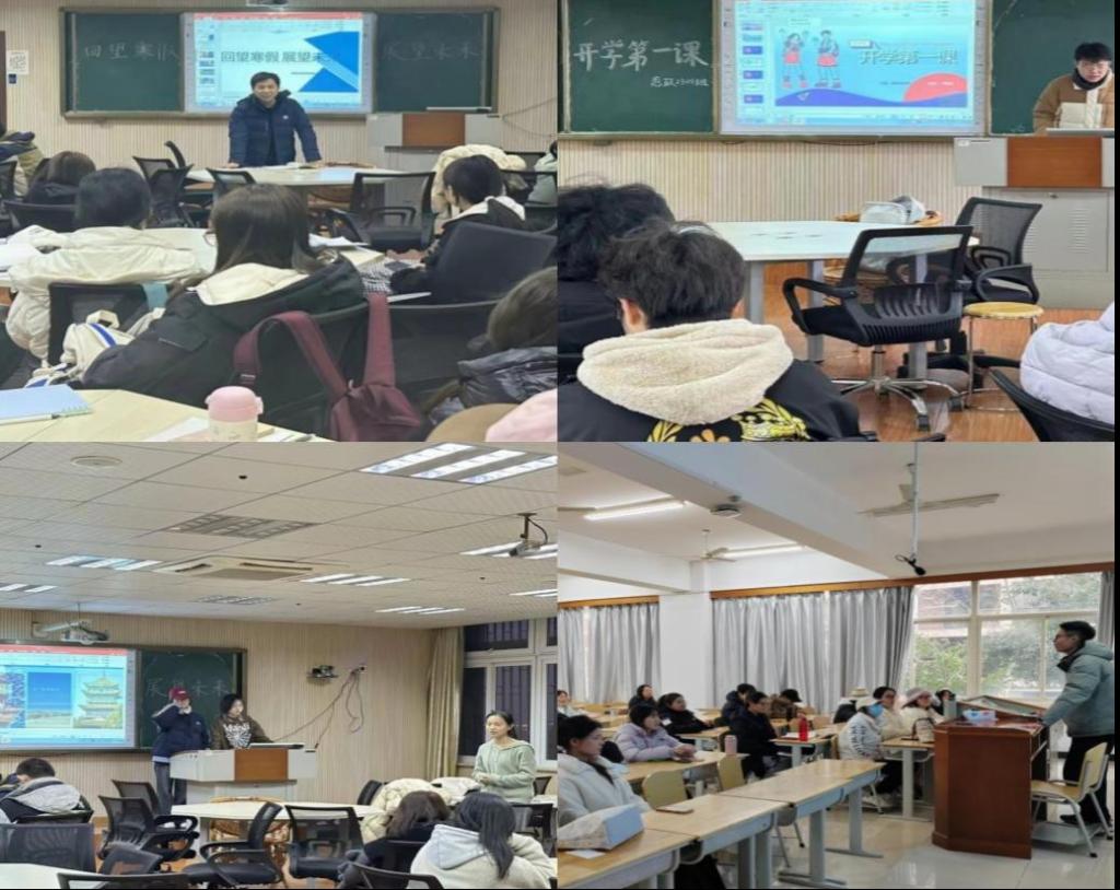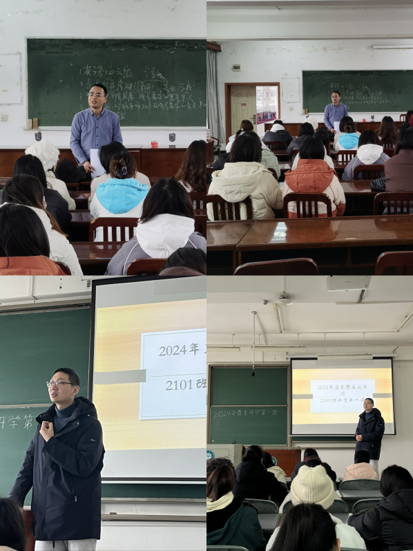 各班还结合新学期重点工作,设置了有针对性的班会环节。2021级针对学生毕业设计和未来发展方向,组织同学们讨论了就业、出国、考研等规划,强调要做好时间管理,积极关注相关信息,结合就业形势和行业发展做好充分准备;2022级引导同学总结和反思了上学年的学习情况,分享了假期学习和社会实践经历,引导同学们制定新学期的计划;2023级重点强调了专业分流后的学习要求,引导同学们明确职业发展方向。