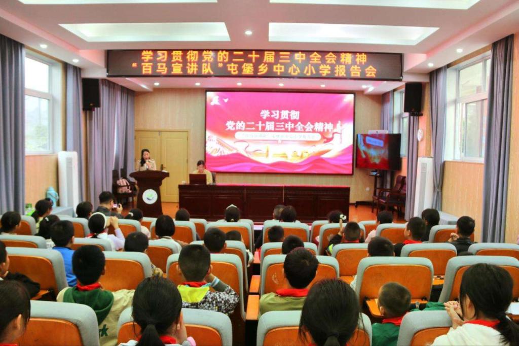“百马”宣讲队成员、我院教师陈文婷和“黎海波名嘴工作室”成员赵玲在屯堡乡中心小学进行同台宣讲。陈文婷从学理层面进行了宣讲,赵玲则侧重于学校实践,围绕全力以赴抓好全会精神贯彻落实和高举队旗跟党走进行了宣讲。屯堡乡中心小学老师和三个年级的学生等参加学习。
