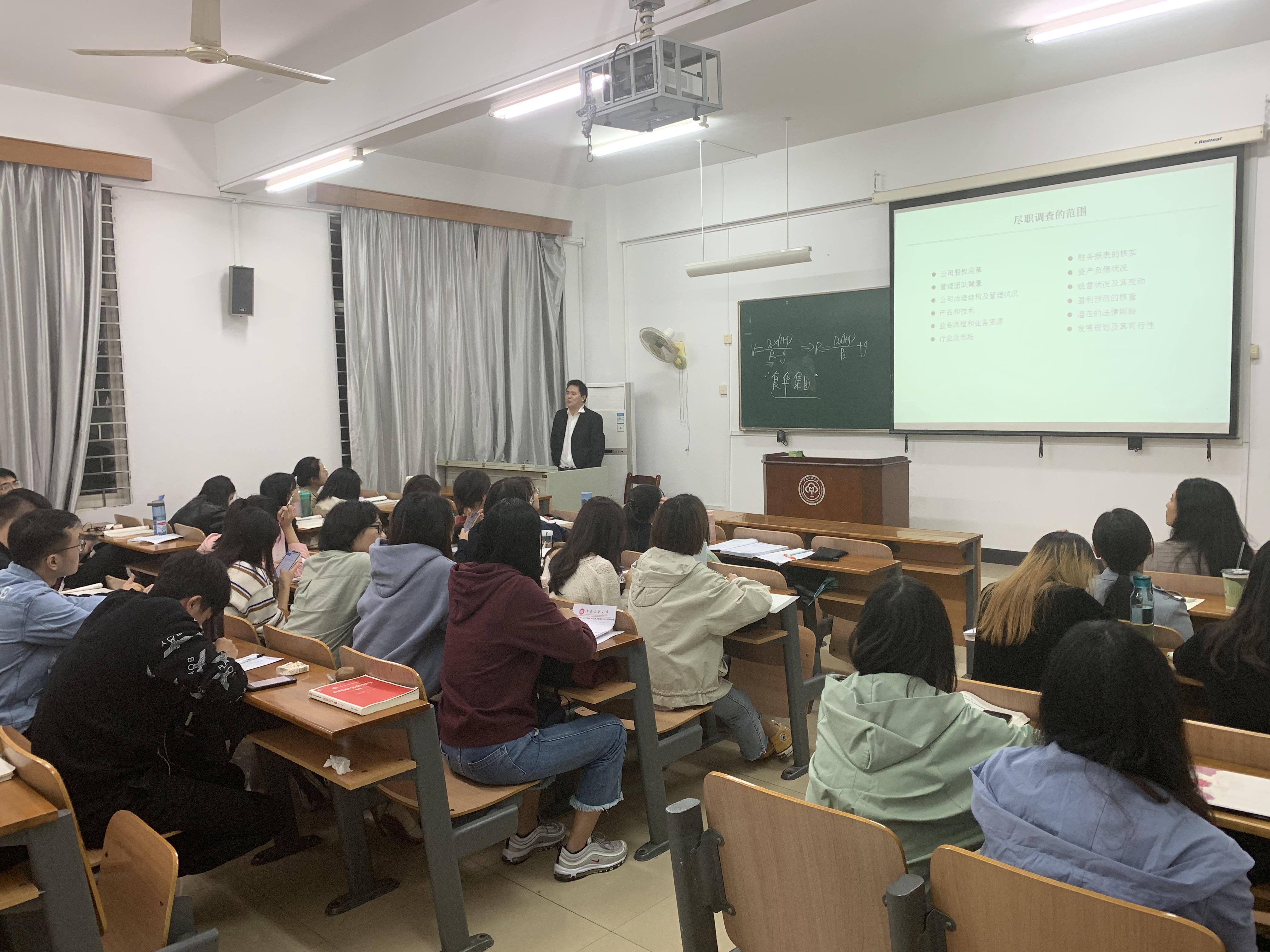 2019年10月22日晚,在10号楼210教室,湖北省宏泰国有资本投资运营集团部门总经理助理、高级会计师及注册会计师,同时也是如今MPAcc企业导师的郑强,给2019级MPAcc会计专硕的同学们做了精彩的讲座。郑总助结合其近些年在基金公司以及原来在其他公司的工作经验,将“财务尽职调查”作为当天的教学蓝本,从股权沿革、人力资源、盈利能力以及部门访谈等多个角度讲述在实际工作中如何进行调查,并深刻地讲解调查的原则、方法、目的和重点事项,同时以私营企业为例向同学们更加直观地展示财务尽职调查具体细节,其稳中有序、平易近人的讲座风格颇受在场学生好评,同学们受益匪浅。