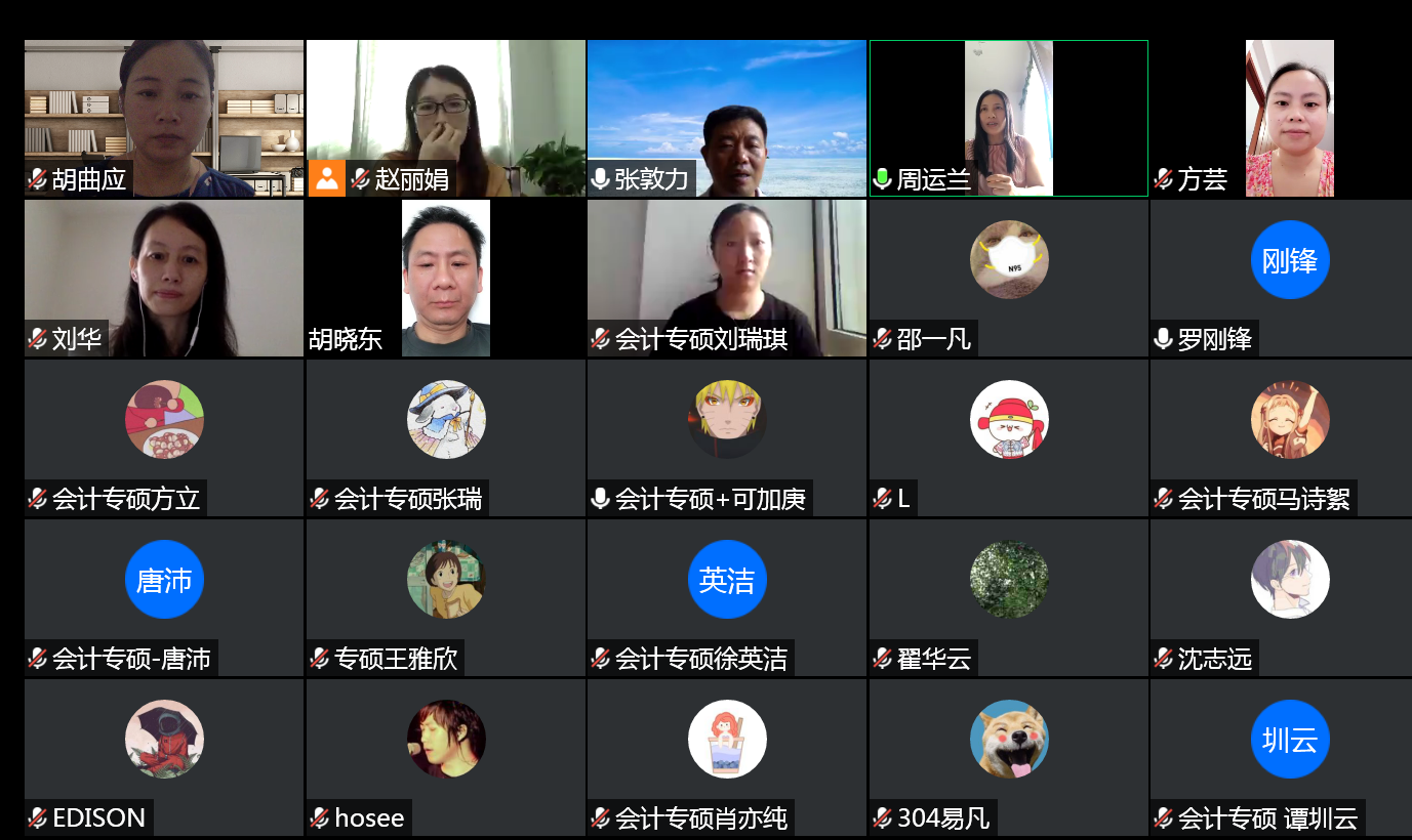 为加强我院会计专硕学科建设水平,提高会计专硕学生职业能力素养,6月15日上午,中南财经政法大学会计学院院长、全国会计专业研究生学位教育指导委员会委员、财政部首届全国会计领军人才张敦力教授,应我院邀请通过腾讯视频会议平台向我院MPAcc师生分享传递会计专硕专业建设经验,同时做了主题为《数字智慧经济时代财务管理创新》的会计大讲堂公益讲座。本次线上讲座与经验分享由我院副院长周运兰教授主持,全体会计专硕师生参与了此次讲座。