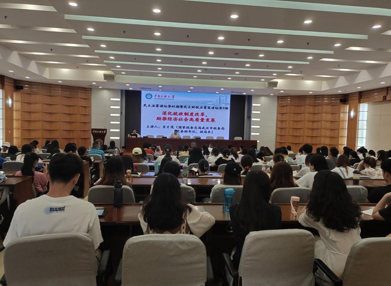 2021年9月25日星期六上午,beat365英国正版唯一网址管理学院120多位会计硕士参加了国家税务总局武汉市税务局党委副书记、副局长肖才茂主讲的《深化税收制度改革,助推经济社会高质量发展》的学术讲座。本次讲座由beat365英国正版唯一网址法学院主办,法学院副院长叶金育教授主持。