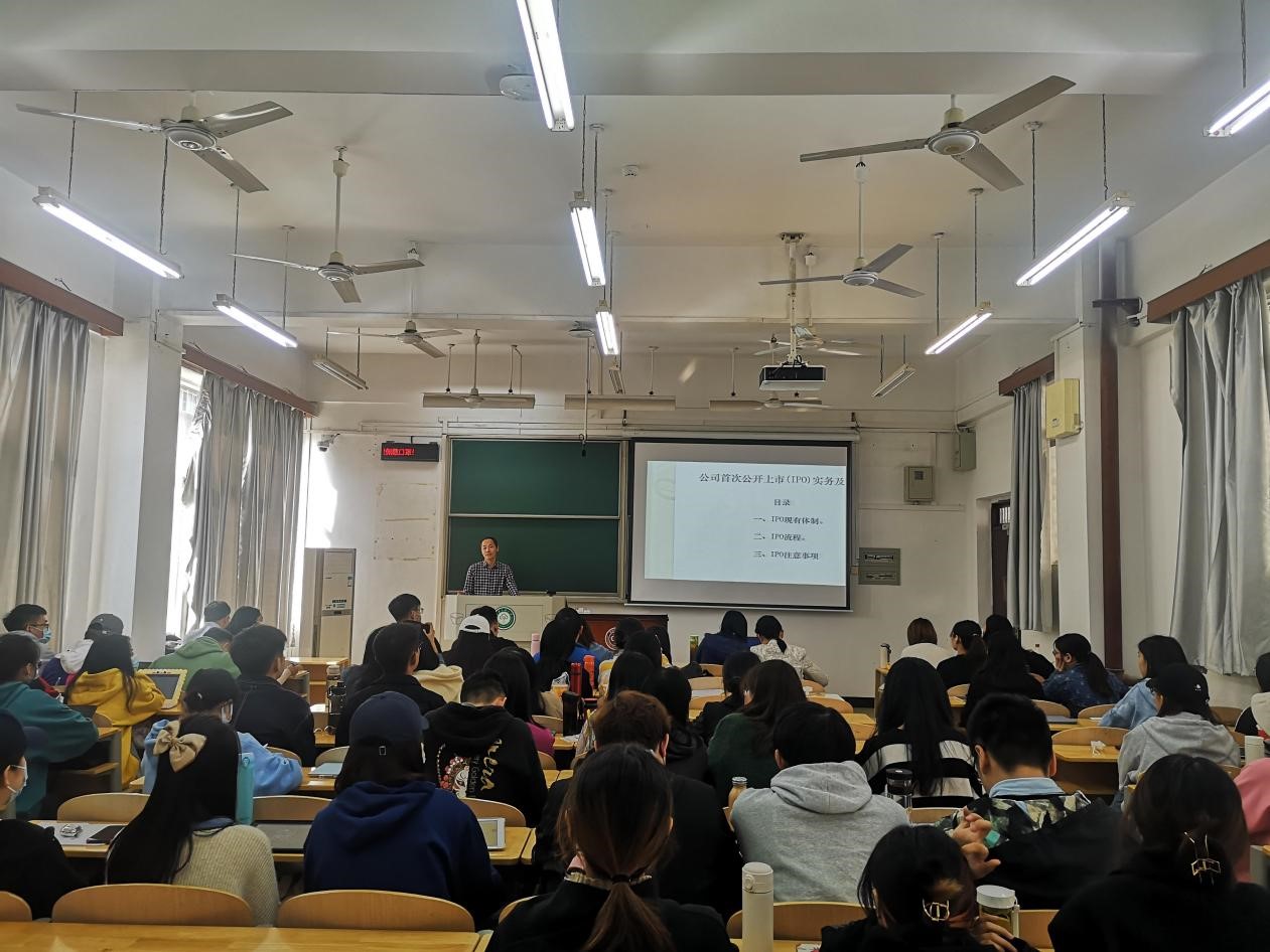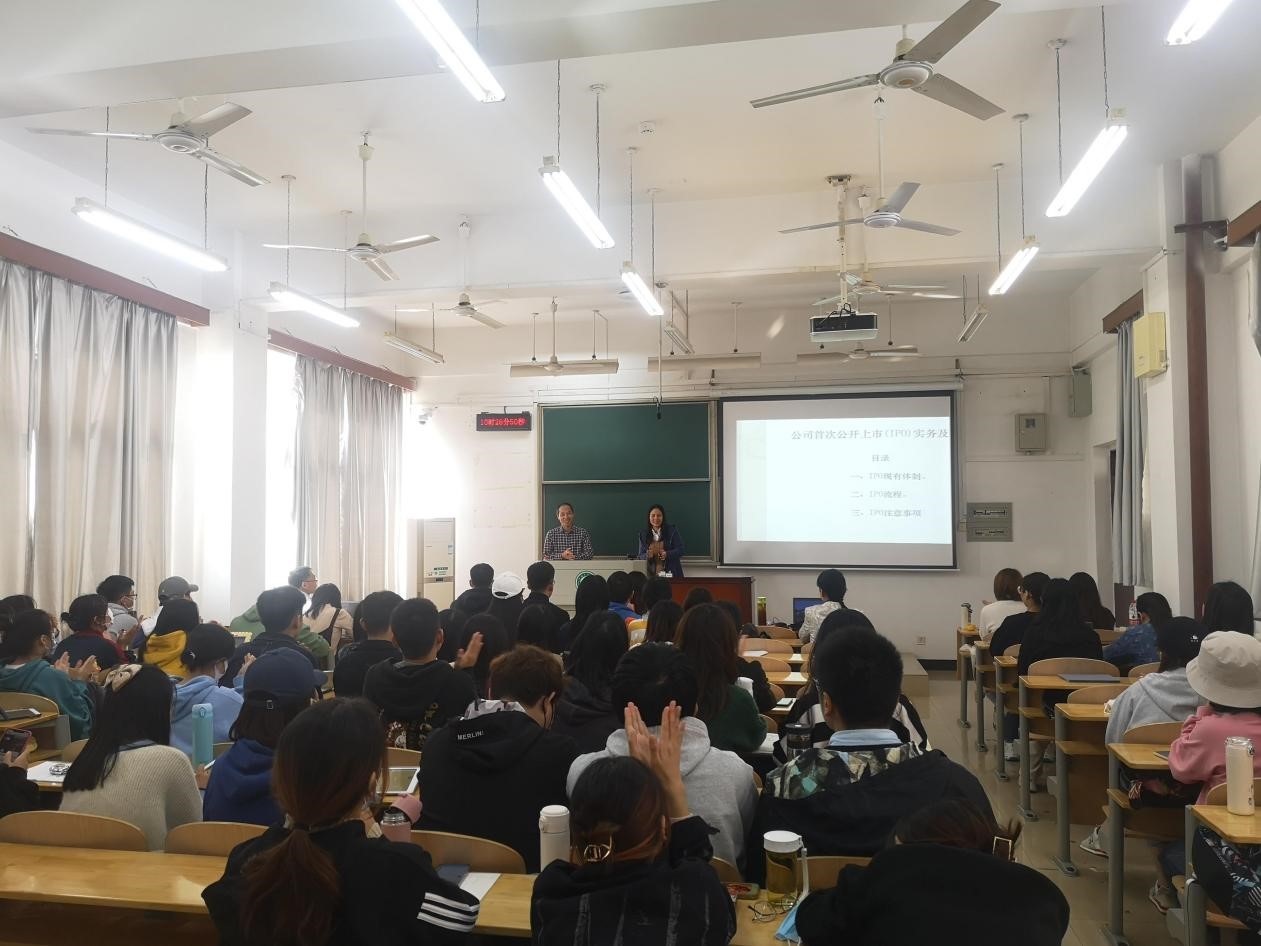 王总介绍了公司首次公开上市的现有体制以及公司上市的好处和意义,并阐述了IPO审核发行上市的具体流程。同时,他向大家分享了公司首次公开上市需要注意的一些具体事项以及自己的心得体会,他谈到在公司首次公开上市的过程中一定要做到股权合规、财务合规、财务真实等。此外,他还为同学们简明扼要地讲解了招股说明书的内容。