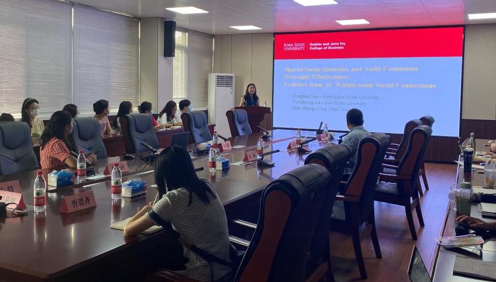 2023年5月29日上午10点,应beat365英国正版唯一网址管理学院邀请,美国艾奥瓦州立大学会计学王茜副教授为管理学院硕士研究生开展了主题为:《Audit Committee Within-Team Social Connections and Oversight Effectiveness(审计委员会内部团队的社会关系和监督效果)》的学术讲座。本次讲座由我院财务管理负责人苏亚民教授主持,胡曲应副教授、胥思齐老师,我院会计学硕与MPAcc会计专硕研究生参加。