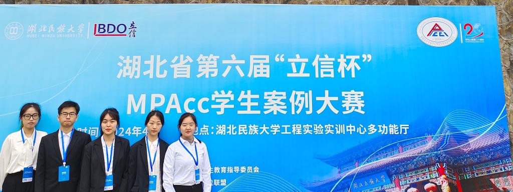 湖北省第六届MPAcc案例大赛于2024年4月20日至21日在湖北民族大学举行。我院由翟华云老师和企业导师熊年春老师指导的2023级MPAcc学生“Heartsteal队”(团队成员:陈滢霏、陈心蕊、张佳玺、李子奕、商泽涛),在湖北省第六届MPAcc案例大赛中虽然惜败于华科,但他们的表现依然赢得了在场观众的热烈掌声和评委的高度评价,最终斩获三等奖。