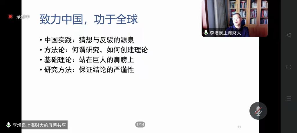 管理学院第二场“新文科新融合新管理”暑期系列讲座在2024年7月30日上午线上开讲,上海财经大学会计学院教授,博士生导师,党委常委、副校长李增泉教授受邀做主题为《中国会计研究的意义》的讲座。此次讲座由院长翟华云教授主持,管理学院师生100余人参加会议。
