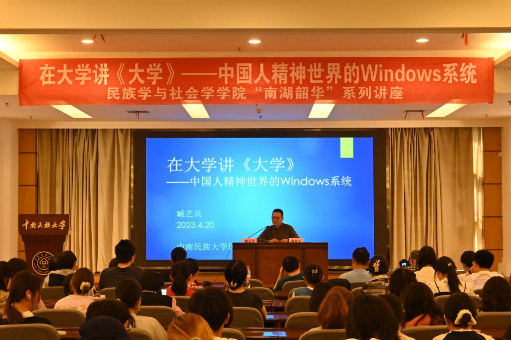 4月20日下午,厦门集美大学荣休教授臧艺兵受邀做客民族学与社会学学院“南湖韶华”系列讲座,为学院师生作了题为“在大学讲《大学》——中国人精神世界的Windows系统”。此次讲座由陈祥军教授主持,我院部分老师、硕士研究生和2022级本科生260余人共同参与。