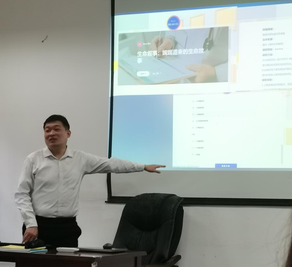 本次培训分为三个部分,依次进行。首先,周海丰老师向大家简单介绍了本次医务社会工作实务技能大赛的两个关卡内容,以图片形式展示了3D虚拟仿真实务技能竞赛软件各个页面的操作方法、得分要点以及相关注意事项。其次,经过相关学习,大家进行了实际操作练习,周海丰老师根据练习的结果进行了数据分析,更清楚地展示了同学们在操作过程中的易错点。最后,周海丰老师对同学们提出的问题及疑惑一一进行了细致的解答,为后续模拟及正式比赛打下了良好的基础。