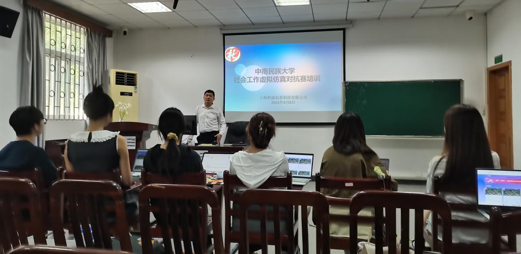 9月8日上午,在社会工作教研室主任刘宏宇老师的组织下,上海积途信息科技有限公司周海丰老师到我院开展医务社会工作实务技能大赛虚拟仿真对抗赛培训,本次培训在学院社会工作实验室进行,研究生及本科生两支参赛队伍全体成员参与培训。