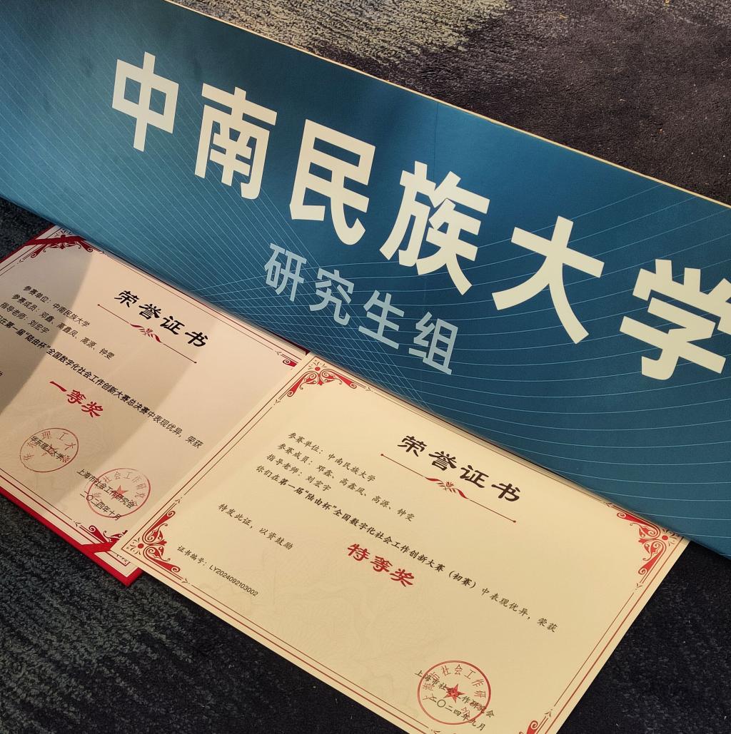 2024年10月18日至20日,第一届“陆由杯”全国数字化社会工作创新大赛总决赛在上海华东理工大学徐汇校区落幕。我院社会工作专业研究生、本科生组成的两支队伍喜获研究生组一等奖和本科生组二等奖。