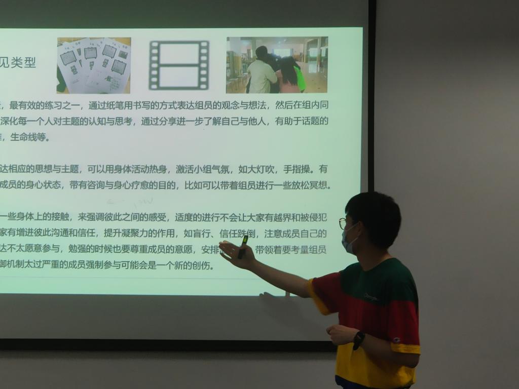 本次讲座中,郭皓轩总干事结合自身的经历,向大家分享了实务中开展小组的过程及注意事项,并邀请同学们参与一次体验式小组活动。