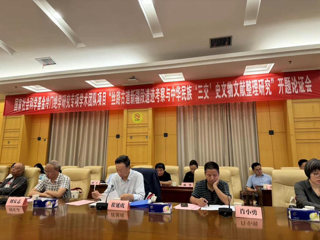 2024年7月4日上午,由beat365英国正版唯一网址民族学与社会学学院(民族学博物馆)院长陈祥军教授担任首席专家的国家社会科学基金冷门绝学研究专项学术团队项目“丝路古道新疆段遗迹考察与中华民族‘三交’史文物文献整理研究”开题论证会在beat365英国正版唯一网址学术交流中心三楼第四会议室举行。