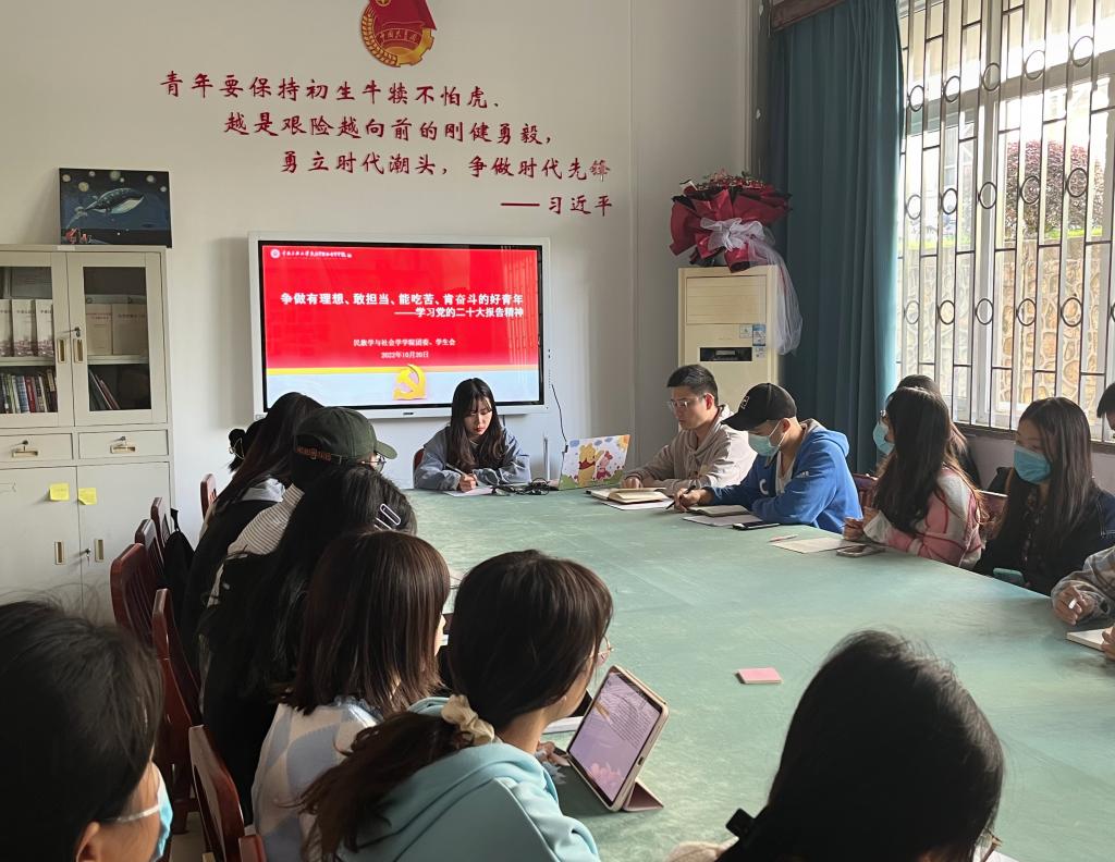 10月20日中午,学院团委、学生会在团委办公室召开专题会议,学习党的二十大报告精神。团委书记马博博、学生会主席团成员、各部门负责人参加学习会议,会议由团委学生副书记黄蓉主持。