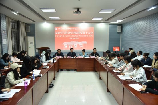 11月4日下午,学院在人类学实验室组织召开团学骨干大会,学习习近平总书记在中共中央政治局第九次集体学习时的重要讲话精神。院党委书记钱文彬、党委副书记王璐璐、团委书记袁磊、团委副书记马博博出席会议,院团委、学生会、研究生会团学骨干共同到场学习。会议由团委书记袁磊主持。