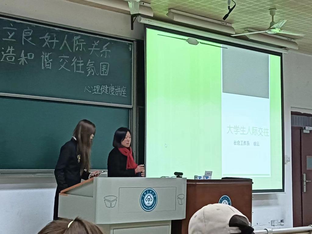 11月13日晚,学院在11栋教学楼100教室举办题为《建立良好人际关系,营造和谐交往氛围》的心理健康主题讲座。我院资深心理咨询师徐云主讲,2022级社会学专业宋攀月主持,2022级全体学生共同参与。