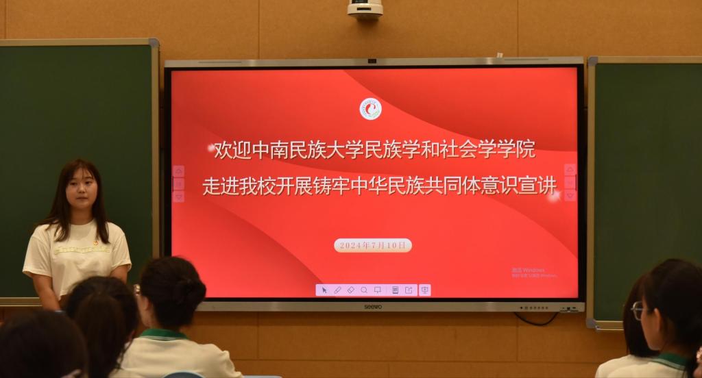 7月10日下午,民族学与社会学学院“同心石榴籽”铸牢中华民族共同体意识学习实践宣讲团走进中央民族大学附属中学呼和浩特市分校开展宣讲。玉泉区委统战部常务副部长池爽、统战部副部长、民委主任巩建平、中央民族大学附属分校呼和浩特校区党政办主任高宇、团委书记王伟等人参与本次活动。