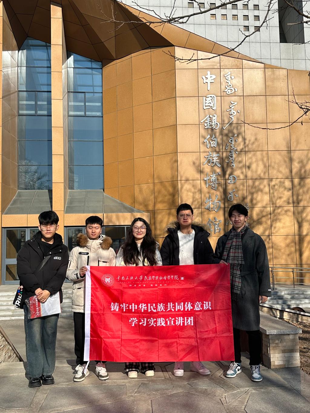 1月18日至20日,我院“同心石榴籽”铸牢中华民族共同体意识学习实践宣讲团在我院团委副书记马博博和2023级辅导员袁亚南的带领下,前往辽宁省沈阳市开展“跟着‘概论’教材走中国”社会实践活动,在学思践悟中探寻沈阳“三交”印记,传承弘扬锡伯族“万里戍边”的爱国主义精神。
