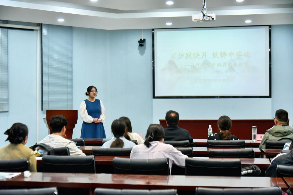 为深入贯彻落实党的二十届三中全会及全国教育大会、全国民族团结进步表彰大会精神,进一步落实习近平总书记关于编好用好《中华民族共同体概论》等教材的重要指示,学院于5月10日晚在八角楼举办“学好概论金教材,青春托举中国梦”演讲比赛院级选拔赛。本次比赛邀请学院党委副书记王璐璐,团委书记袁磊,团委副书记马博博,本科生辅导员袁亚南和研究生辅导员席钰萍担任评委。