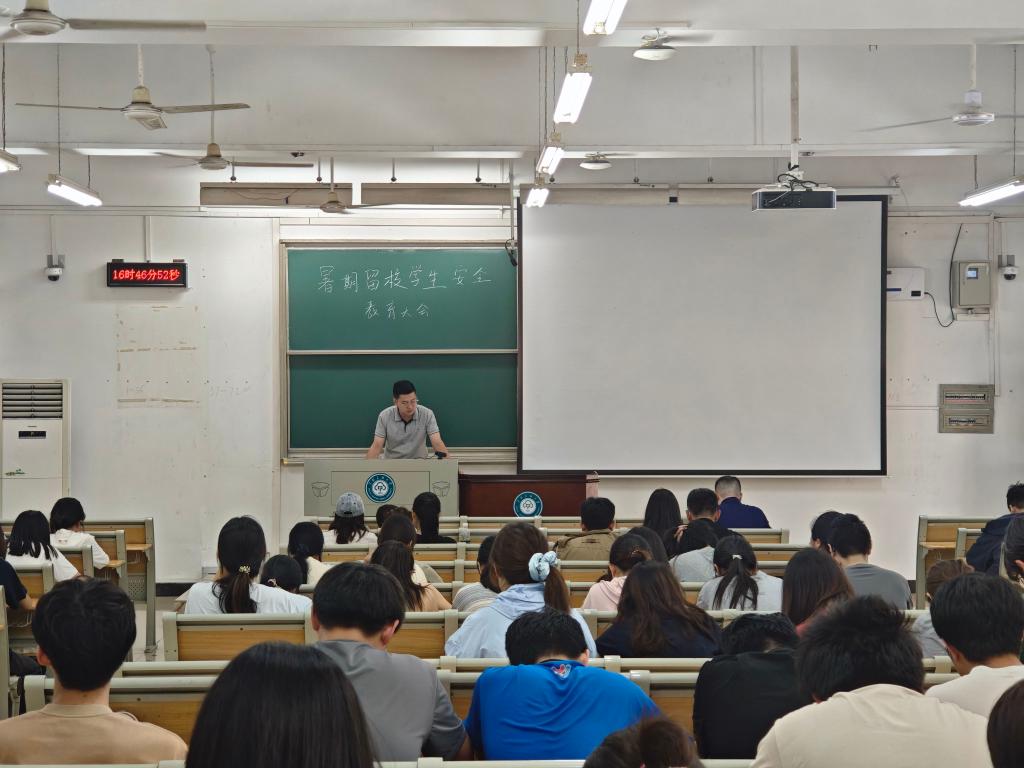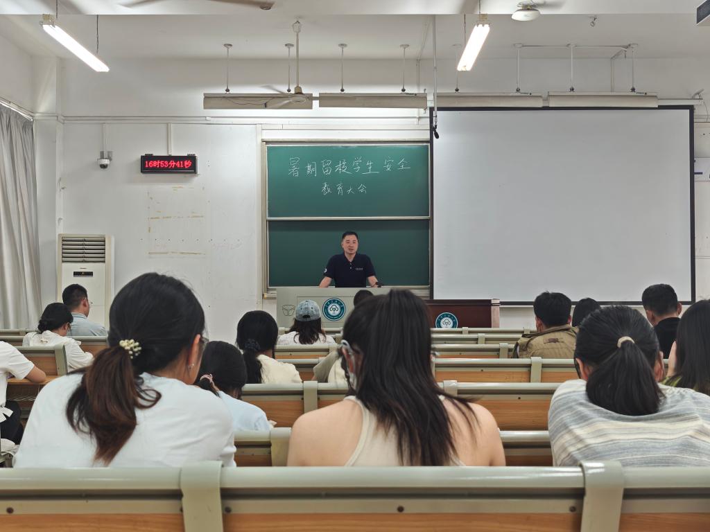 为增强暑期留校学生安全纪律,并为考研学子指明方向,7月10日下午,我院于11栋207教室召开2025年暑期留校学生安全教育大会。党委副书记王璐璐、学工办副主任袁磊、近150名暑期留校学生参与此次会议。会议由2022级辅导员马博博主持。