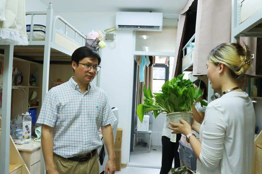 社会学2403班杨欣怡说到:“老师们在新学期来到宿舍慰问我们,还送我们绿植,让我很感动。在新学期,我会谨遵教诲,认真学习。”