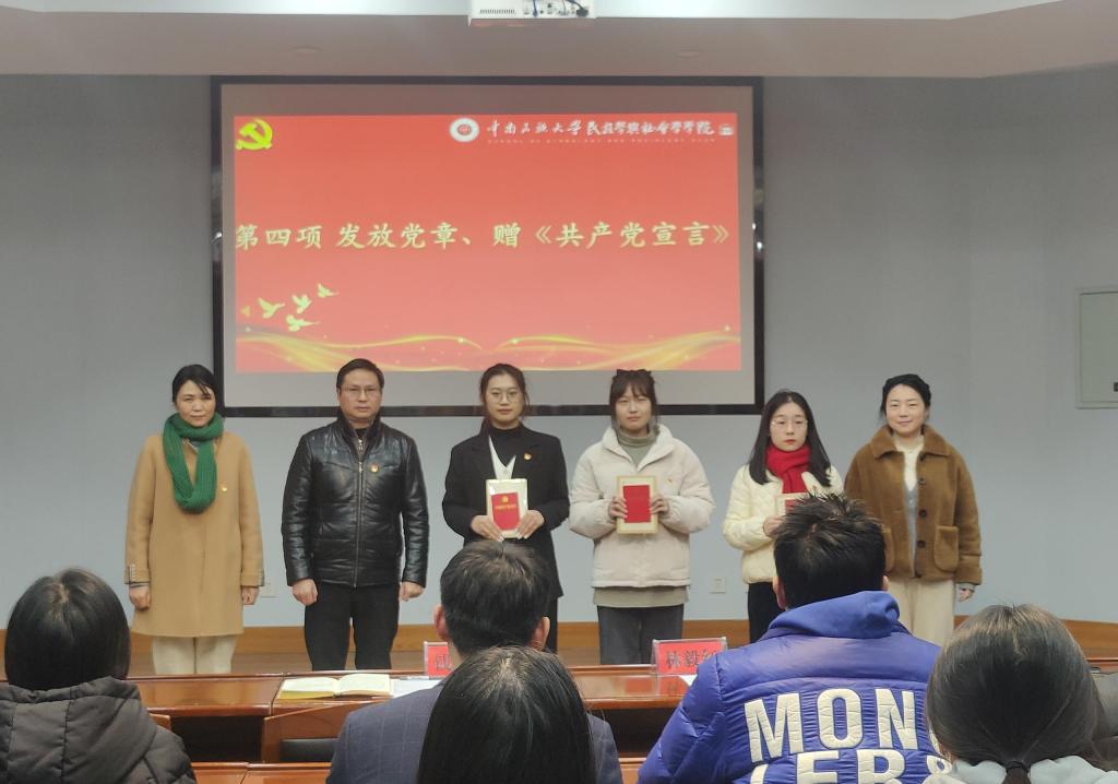 宣誓结束后,学院领导为新党员代表发放《中国共产党章程》并赠送《共产党宣言》,勉励新党员不断加强理论学习,始终坚定共产主义远大理想和中国特色社会主义共同理想,在读原著、学原文、悟原理中不断提升政治理论水平,感悟思想伟力。社会工作专业师生党支部孙艳馨代表新党员发言。她回顾了自己从一名共青团员到一名预备党员的成长历程。她表示,在今后的学习生活中要不断加强政治理论学习,锤炼过硬专业本领,投身基层社会实践,用实际行动践行有理想、敢担当、能吃苦、肯奋斗的青春目标。