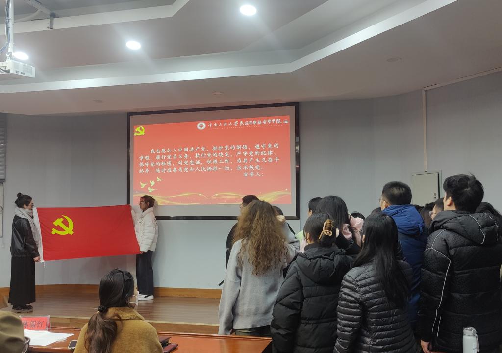 “我宣誓,我志愿加入中国共产党,拥护党的纲领,遵守党的章程……随时准备为党和人民牺牲一切,永不叛党。”12月26日下午,学院举行2023年度秋季学期新党员入党宣誓仪式,学院党委书记钱文彬,党委副书记王璐璐,党委委员、副院长林毅红出席宣誓仪式,各党支部书记、各年级辅导员、新党员以及入党积极分子代表参加宣誓仪式。宣誓仪式由学院学工办主任袁磊主持。
