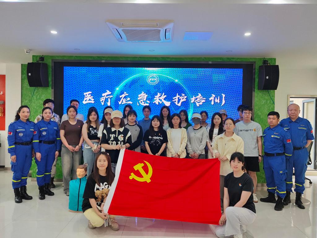 实践操作环节,党支部成员在蓝天救援队队员的指导下利用模拟人演练心肺复苏的操作手法,掌握三角巾、绷带对肢体不同部位的止血固定包扎技巧,了解自动体外除颤器(AED)的使用方法以及如何使用“生命地图”,掌握实施海姆立克法的注意事项……