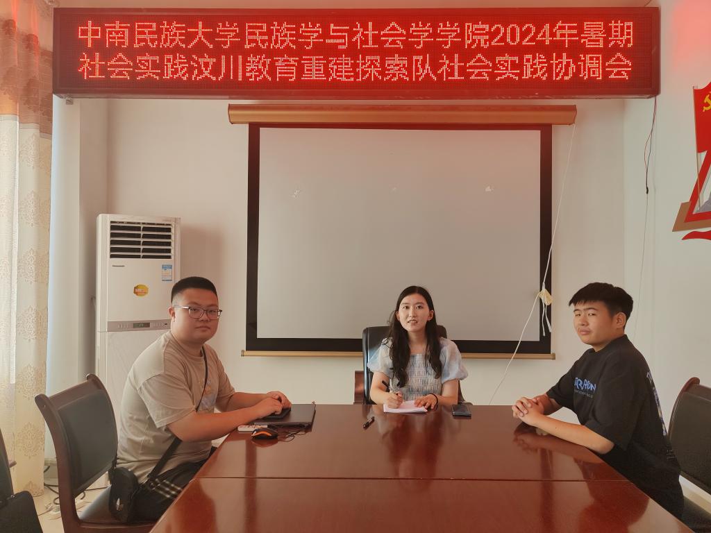 图为团队成员与共青团汶川县委员会进行相关工作协调接洽
