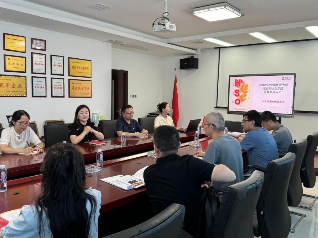 湖北华盛人力资源有限公司拥有多项行业资质荣誉。公司代表在会议上详细介绍了近年来成功实施的多个项目。面对未来市场的无限可能,同时表达了与民族学与社会学院深入合作的迫切愿望。公司希望借助学院在学术研究、人才培养方面的优势,共同开展一系列社会调查类项目,旨在通过精准的数据分析与科学的研究方法,为政府决策提供有力支撑,为企业发展指明方向。同时,公司也提出了对实习生基地的建设,期待通过实践平台,让更多学生在真实项目中学习成长,实现从理论到实践的跨越。