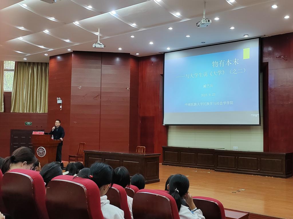 为引导我院新生尽快适应大学学习生活、融入大学文化氛围。9月23日上午,我院邀请臧艺兵教授做客“泽霖讲坛”,在模拟法庭开展了题为“物有本末——与大学生说《大学》”的新生教育讲座。副院长方长明教授主持讲座,我院全体2023级新生到场学习。