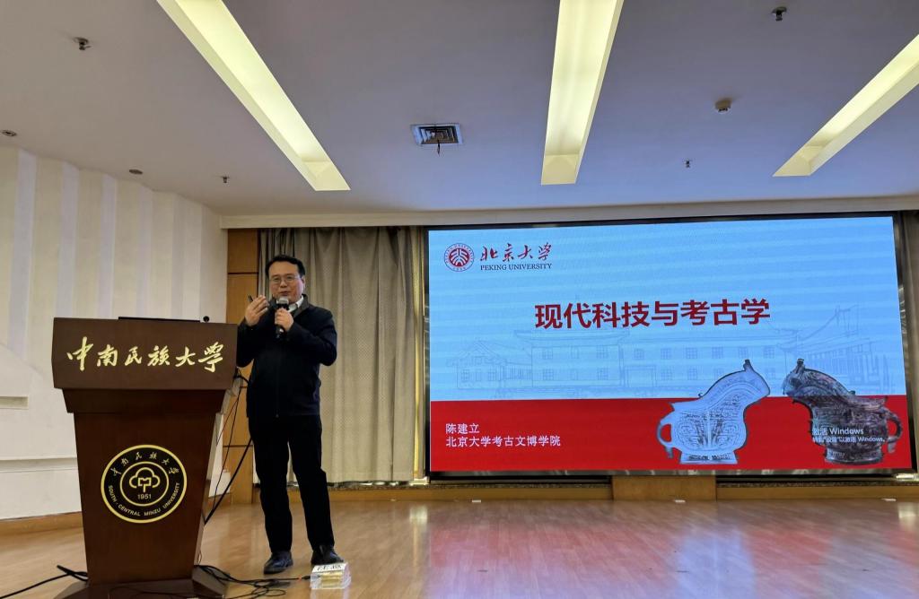 3月14日下午,北京大学考古文博学院党委书记、国家社科基金重大项目和国家重点研发计划项目首席专家陈建立教授应邀做客“泽霖讲坛”,在润良报告厅开展了题为《现代科技与考古学》的学术讲座。讲座由陈祥军院长主持,学院党委书记钱文彬、副院长方长明及各专业师生参加了讲座。