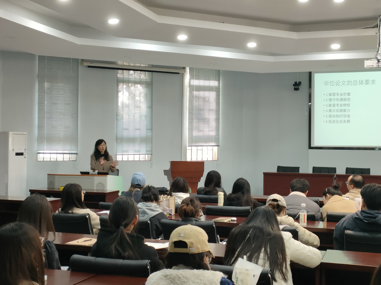 讲座伊始,慈勤英教授首先向我们介绍了社工专硕论文的写作规范。从学位论文的总体要求深入到选题、类型和结构指导。详细阐述了从选题到结构、从文献综述的高效梳理到研究方法的恰当使用等一系列规范要求。慈教授引用自身的例子为同学们生动地讲述了在生活中发现问题,从而引发思考进行论文创作,为社工专硕学生的论文写作夯实了基础。同时,对当前社工专硕论文写作中存在的刻板模式进行了深刻剖析,指出其弊端与局限,引发了在场听众的强烈共鸣与深刻反思。最后,慈勤英教授描绘出理想中的社工专硕论文蓝图,鼓励学生突破传统,融入创新思维与深度实践感悟,以提升论文的质量与价值。