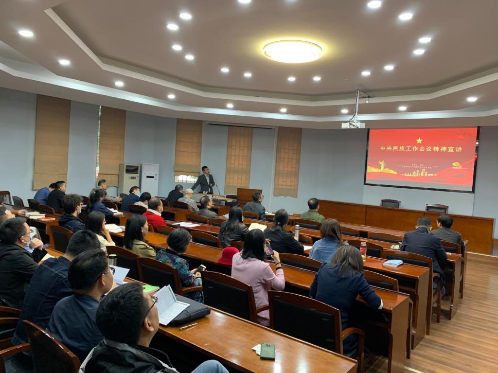 10月14日下午,学院举办学习贯彻中央民族工作会议精神宣讲报告会,学校专家宣讲团成员李然教授作专题宣讲。党委书记李从浩主持宣讲会,全体教职工参会。