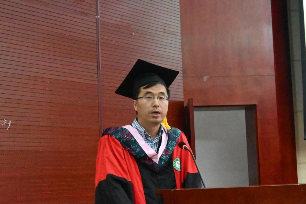 教师代表李然送上了毕业祝福,他向毕业生们寄语三点希望:把感恩当做期望,珍惜身边的人和事;持续学习,不要放弃曾经的梦想;牢记“笃信好学,自然宽和”的校训,“和谐、自强、奋进、创新”的院训,牢记自己是民大人、民社人。他祝愿毕业生们在人生的道路上越走越宽,越走越远,越走越好,为中国式现代化和中华民族现代文明做出更大的贡献,无愧于这个伟大的时代。