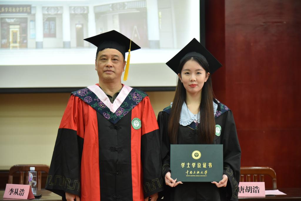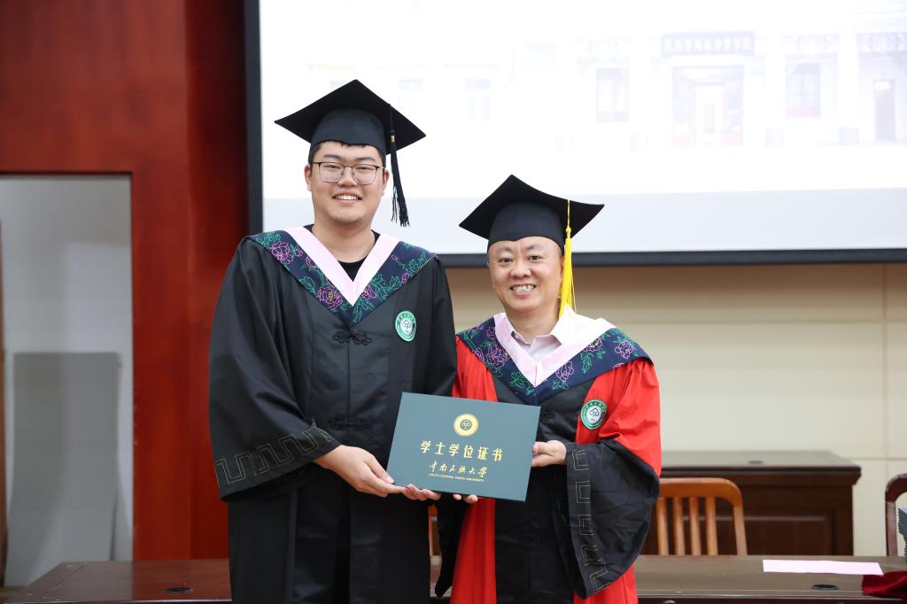 随后,学院党委书记李从浩和院长田敏为毕业生行拨穗礼并颁发毕业证书,毕业生们纷纷拍照留念,记录这一难忘时刻。典礼最后,李书记希望毕业生们继续秉承“笃信好学,自然宽和”的校训精神,无论走到哪里都不忘双塔下南湖畔的那一抹火红的骄阳,永葆初心和使命,在新的征程上继续践行有理想、敢担当、能吃苦、肯奋斗的时代号召。