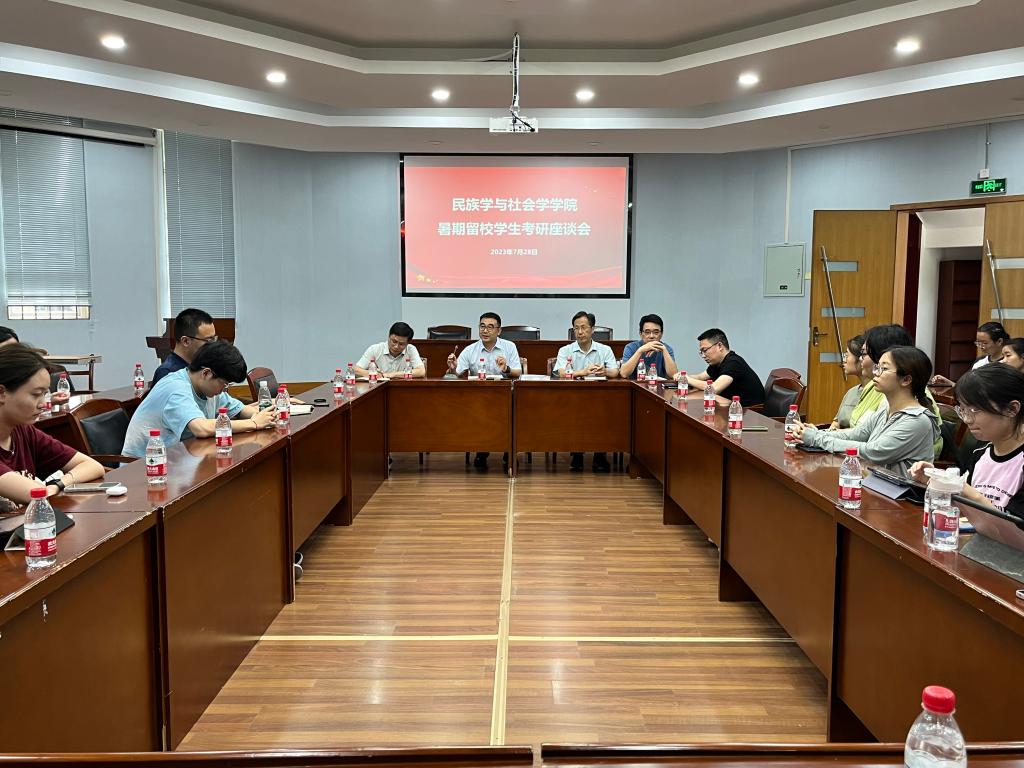 为提振同学们的考研信心,着力解决学院就业难题,推动主题教育走深走实,7月28日下午,学院在八角楼报告厅召开暑期留校学生考研座谈会,院党委书记钱文彬、院长陈祥军、民族学教研室主任闫天灵老师、社会学教研室主任卢飞老师、历史学教研室秦熠老师、2017级优秀毕业生夏依旦·吾守尔以及2020级部分留校学生参加座谈会,座谈会由院长陈祥军主持。