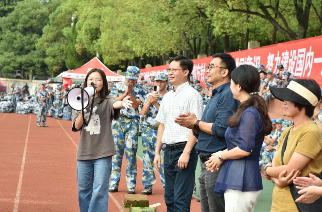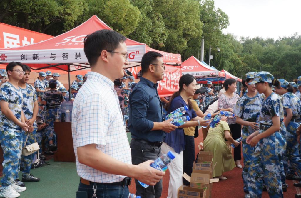 9月15日,院党委书记钱文彬、院长陈祥军、院党委副书记王璐璐、2023级新生各班班导师到军训现场慰问军训新生及承训教官。
