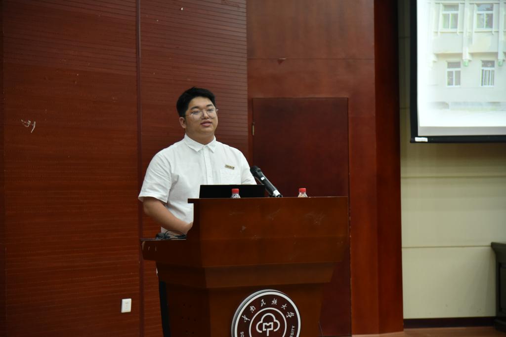 教师代表,历史学类2301班班导师王鹏玮殷切寄语新生在全新的知识海洋里多“泡一泡”“游一游”,希望新生充分借助民族类大学的特色平台,同各民族同学合作交流,铸牢中华民族共同体意识。他勉励新生一要多读书、读好书、多读好书;二要认识到大学同高中学习模式的差异,学会自身驱动、积极参与学习、主动探索问题,在学习之余通过参加社团活动丰富大学生活;三是对于新事物要勇于尝试,多走多看多实践,争取不留遗憾或少留遗憾。