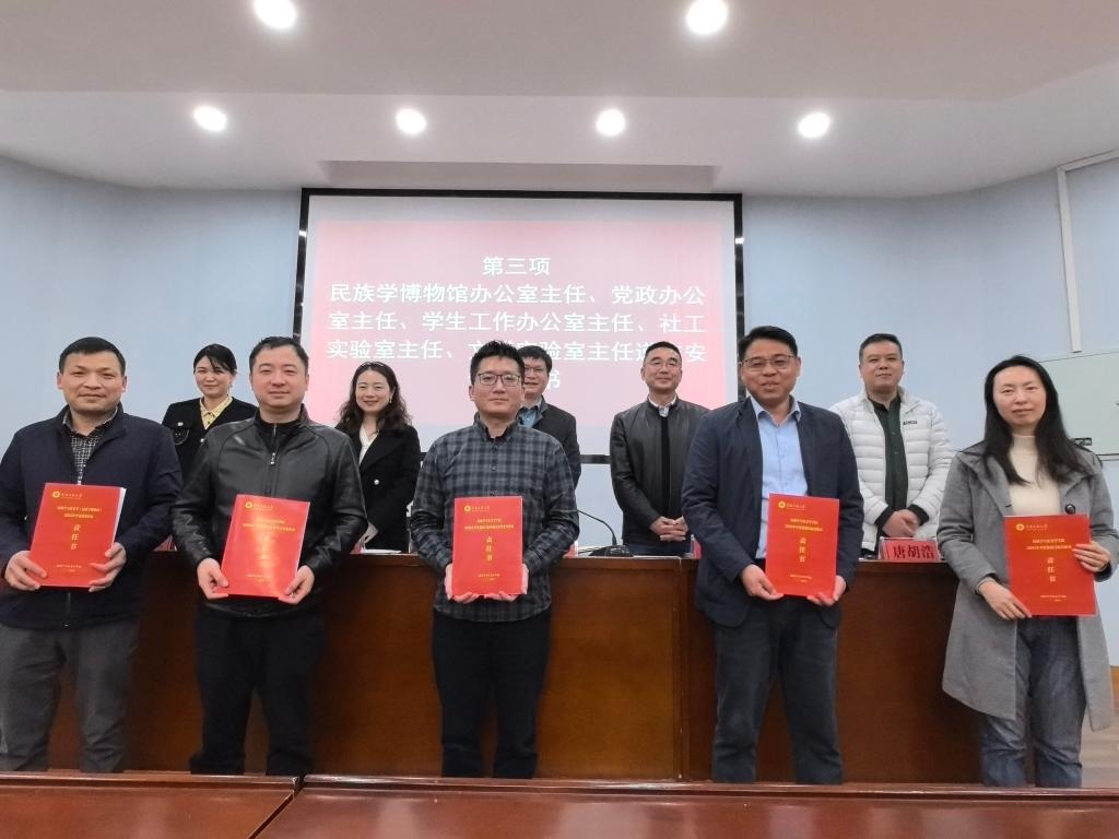 会上,党政办公室、学生工作办公室、实验室、民族学博物馆负责人签认并递交了《民族学与社会学学院平安建设目标管理责任书》。