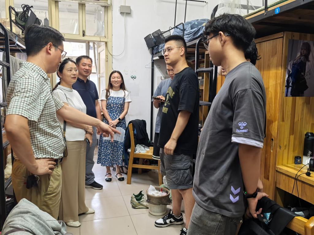9月3日晚,学院党委书记钱文彬、党委副书记王璐璐、学工办副主任袁磊、2022级辅导员马博博、2023级辅导员袁亚南走访了2022级和2023级本科生宿舍,为学生们送去关怀和鼓励。