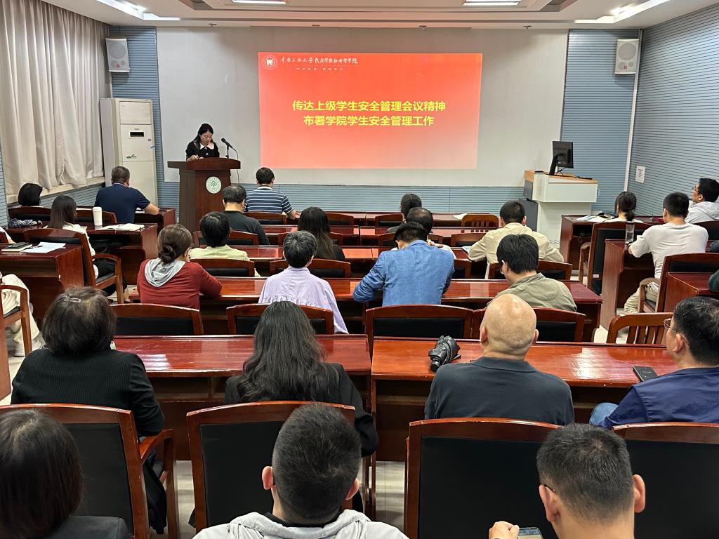 王璐璐同志深入传达了上级关于学生安全管理的会议精神,全面部署了我院学生安全管理工作任务。会议期间,通报了近期发生的突发状况,深刻剖析了存在的问题。同时,她传达了李红燕副校长对班导师、研究生导师工作的指导意见和具体实施办法,以及边境书记召开的安全稳定专项工作会议的精神。结合我院实际情况,会议对学生安全稳定工作进行了详细安排和周密部署。