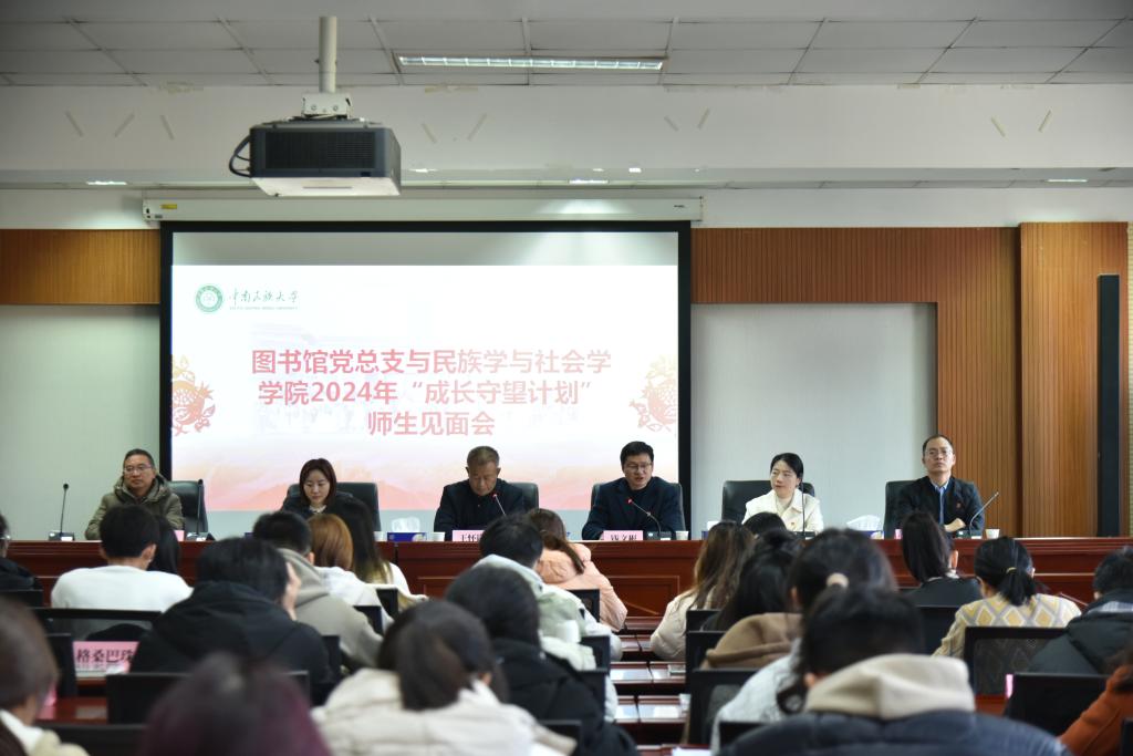 11月27日上午,图书馆党总支与学院2024年“成长守望计划”师生见面会在北书院泽霖学术讲堂举行。图书馆党总支书记王怀岗、图书馆馆长饶映雪、民族学与社会学学院党委书记钱文彬、院党委副书记王璐璐、学工办副主任袁磊、“成长守望计划”帮扶老师和入选同学参与本次会议。会议由王怀岗主持。