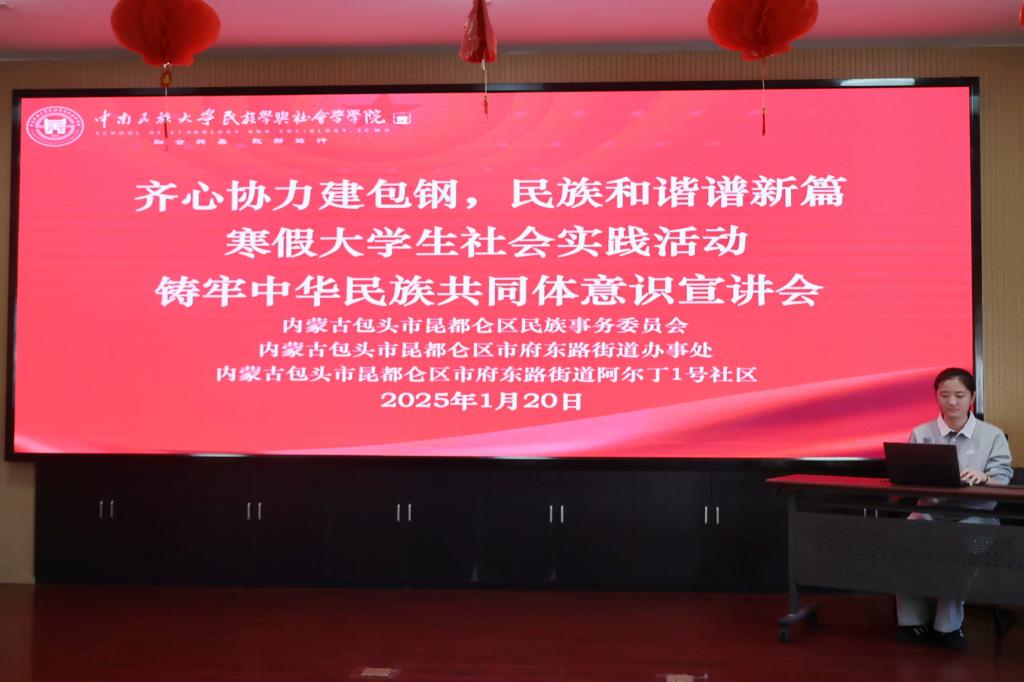 据悉,2024年,宣讲团曾先后赴甘肃武威、内蒙古呼和浩特、湖北宜昌兴山县等地开展“跟着《概论》教材走中国”社会实践活动,讲好“凉州会盟”“昭君出塞”等民族团结故事。未来,宣讲团将继续前往新疆等民族地区,探寻“土尔扈特部万里东归”等民族团结故事,坚持宣讲与调研相结合,让更多的青年学子在传承与传播铸牢中华民族共同体意识过程中挺膺担当。(责编:袁磊,审核:王璐璐,上传:杨科)