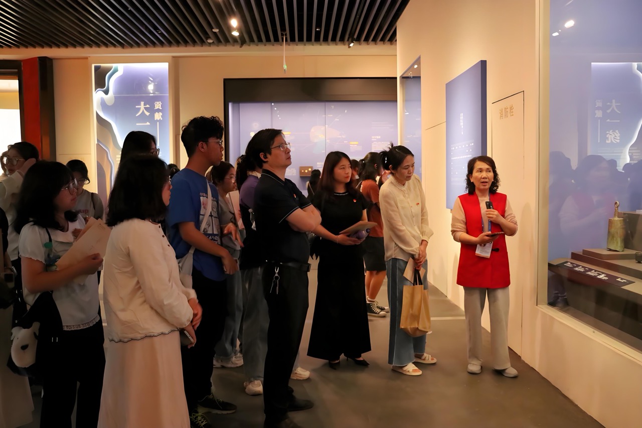 宣讲团党支部书记袁磊在展览展示板前驻足,深有感触地表示:“展览内容与《中华民族共同体概论》教材相得益彰,文物所蕴含的‘三交史’为理论学习提供了具体而生动的例证,促进师生将铸牢中华民族共同体意识转化为实际行动。”