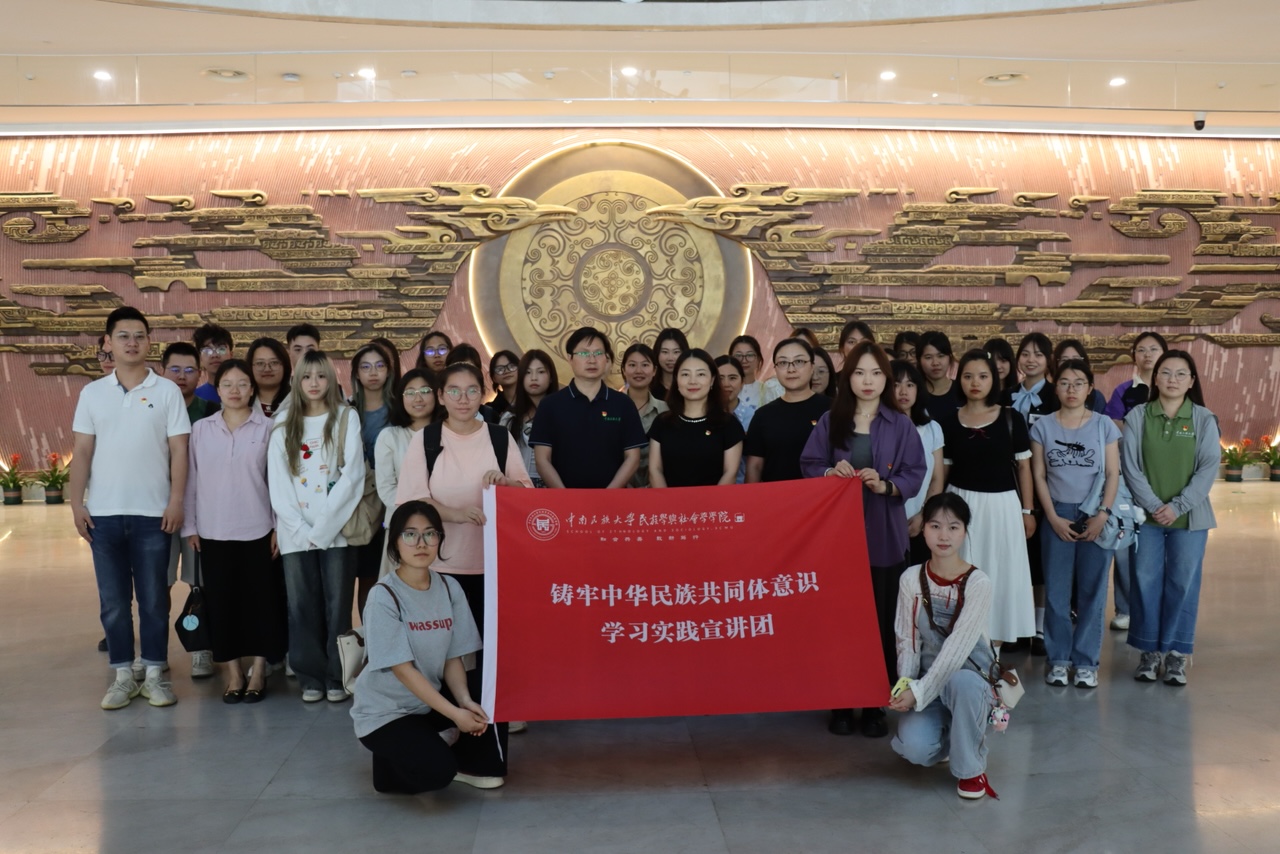为深入学习贯彻党的二十大精神,深化民族团结进步教育,5月7日下午,学院党委书记钱文彬带领党委理论学习中心组成员,与本次展陈设计参与者李然教授及学院师生代表一同前往湖北省博物馆,参观“融在楚天——铸牢中华民族共同体意识文物展”。此次活动由学院铸牢中华民族共同体学习实践宣讲团党支部承办,共有60余名师生代表参与,是一场别开生面的主题教育实践活动。