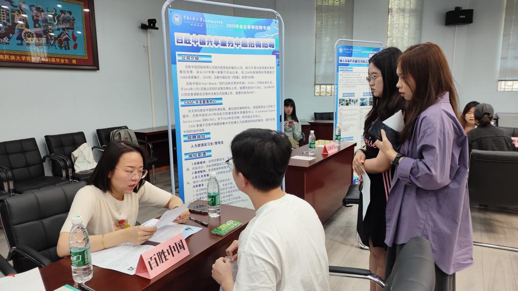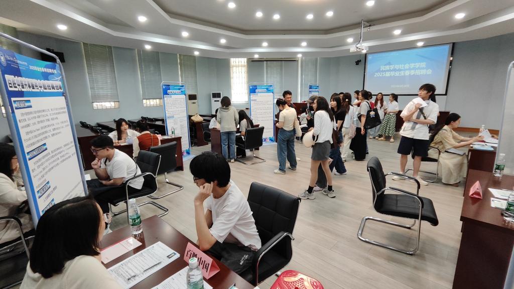 4月28日下午,学院举办2025届毕业生春季专场招聘会。学院2025届毕业生、2022级学生踊跃参加应聘活动,现场气氛活跃、秩序井然。本次招聘会共邀请7家用人单位参加,包括知名企业和社会服务机构等,提供的岗位涵盖人力资源实习生、管理培训生、社会工作服务、社区服务、教育培训、招聘运营、人事管理等领域,与学院民族学、社会学、社会工作等专业培养方向高度契合,为毕业生提供了对口的就业机会。