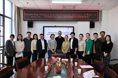 贾佳副院长主持交流座谈会,音乐系刘婷主任、赵洁玮副主任、刘慧教授、音乐系教研室伍莉、刘冰、高幸、夏蕾以及教师代表沈洋、程乐等参与交流讨论。吴涵副院长在致辞中对迪恩·萨瑟恩教授表达了热烈的欢迎,并对学院进行了简要的介绍,提出期待能够建立长期稳定的合作关系,聚焦人才培养、科研创新,携手在高层次人才培养与科学研究中取得更大的进步。随后迪恩·萨瑟恩教授结合克利夫兰音乐学院的实践经验,与我院教师就如何优化配备资源,进一步推动交流合作进行深入探讨。萨瑟恩教授表示,国家间的文化交流以及学校间的互相借鉴是非常重要的。