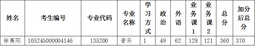 经审核,以下一志愿考生符合“农村义务教育阶段学校教师特设岗位计划”加分条件,初试总分加10分,加分后达到我院2025年硕士研究生音乐专业一志愿复试最低分数线,现纳入复试名单并予以公示: